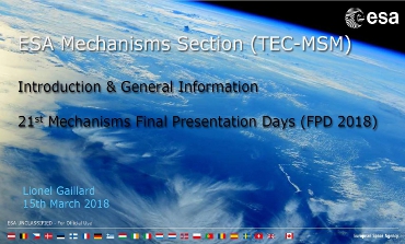 Participation at European Space Agency conference, “Workshop on Optical Mechanisms and Mechanisms Final Presentation Days”