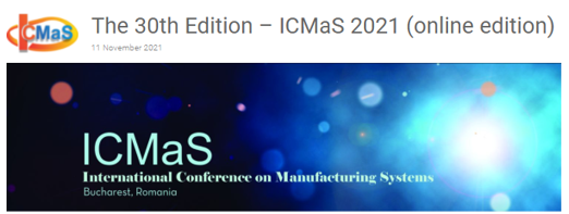 Participare ICPE la lucrarile celei de-a 30-a editii a Conferintei Internationale in domeniul Manufacturing Systems: ICMAS 2021